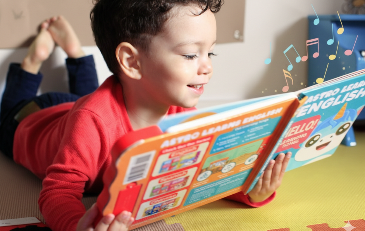 Music books for toddlers 1-3, like Astro Learns English, are ideal for this stage, combining the power of rhythm and melody with rich emotional vocabulary.